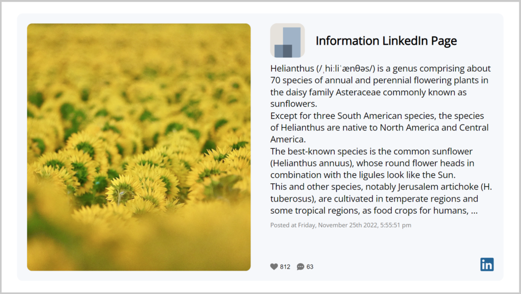With our app, you can display the posts from your LinkedIn page, including text, polls, documents, images, and videos.