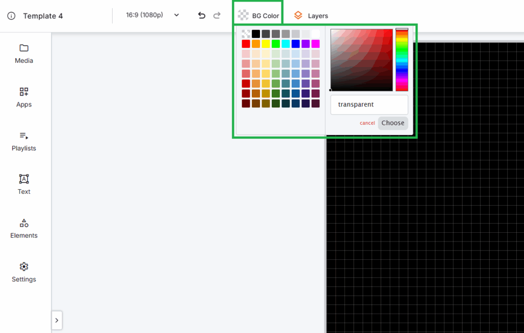 Example Use Case: Quickly update seasonal signage by changing the background from neutral gray to holiday red without rebuilding the layout.