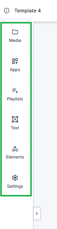 - Left Side Menu (1): Add text, images, videos, shapes, clipart, apps, and playlists to your layout.