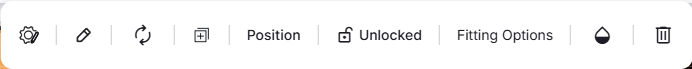 When you select an element on the canvas frame, a toolbar with editing and fitting options specific to that type of content appears at the top.