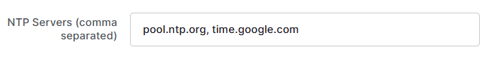 If you leave the NTP Servers field empty, the platform will work automatically with trusted time sources, based on its operating system and locale. This is recommended unless: