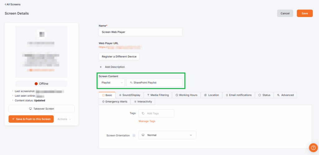 Once created, you can assign your SharePoint Playlist to one or more screens.