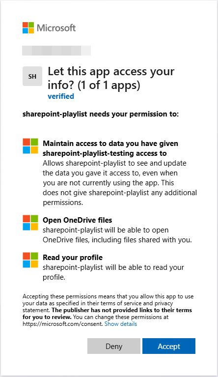 - The SharePoint Playlist supports only Business/Work/School (Entra ID) Microsoft accounts, not Personal Microsoft Accounts.